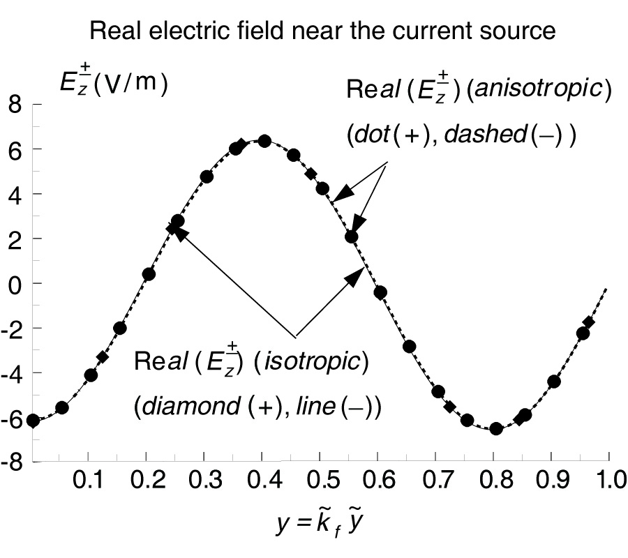 In Section 11 wavenumber and modal orthogonality results were presented and in Section 12 the EM fields corresponding to a specific electric surface current example were calculated for both the anisotropic and isotropic waveguides. In Section 11, six tables of data for the anisotropic and isotropic cases giving numerical examples of the modal wavenumbers that were calculated for the propagating and complex modes of the system (Tables 1 and 2), numerical examples of the modal orthogonality relations that the waveguide modes satisfied (Tables 3 and 4), and numerical examples of the modal power that was transmitted by different propagating modes for anisotropic waveguide case (Table 5) and isotropic waveguide case (Table 6) were presented. In Section 12 for both the anisotropic and isotropic waveguides cases studied, plots of the EM fields near the surface current were shown to meet EM boundary conditions near the electric surface current and near the waveguide walls to a high degree of accuracy. The conservation of complex and reaction power as delivered by and radiated from the electric current source was observed to hold for both the anisotropic and isotropic waveguides studied to a high degree of accuracy.