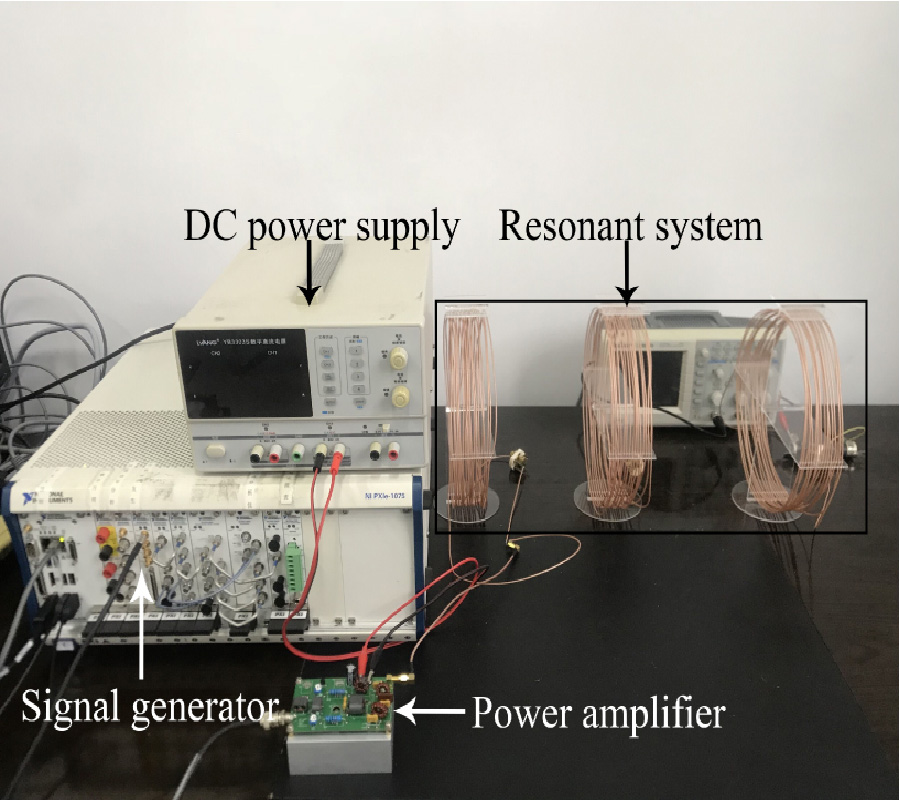 In view of the dynamic wireless energy charging of electric vehicles, because of the different types or dynamic changes of carrying capacity, the distance between receiving coil at the chassis of electric vehicles and transmitting coil under the road will change dynamically. The unsuitable distance may make the system keep an under-coupling state and reduce the output power of energy transmission system. To improve the system output power, and a relay coil can be added between transmitting coil and receiving coil. But the system charging state may change from under-coupling state to over-coupling state directly because of the introduction of relay coil, and at the same time, the system may show frequency splitting phenomenon. These problems can be solved by adjusting the position of relay coil, the rotating angle of relay coil, and the load value. The experiment shows that the system output power can be improved obviously by increasing relay coil and suppressing frequency splitting. In order to obtain the optimal parameters about the position, rotation angle of relay coil, and load resistance, a genetic algorithm is introduced to improve the output power. At last, using the optimal system parameters, a magnetic coupling resonant wireless power transmission (MCRWPT) system is designed and manufactured, by which the effectiveness and advantage of this approach are verified by experiments.